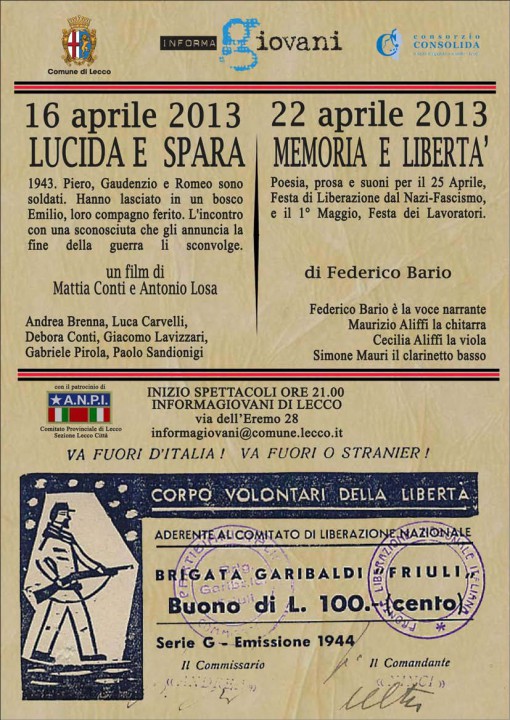 LECCO – Lunedì 22 aprile, alle ore 21.00, presso l’Informagiovani di Lecco, incontro dedicato al tema della MEMORIA E LIBERTA’:
