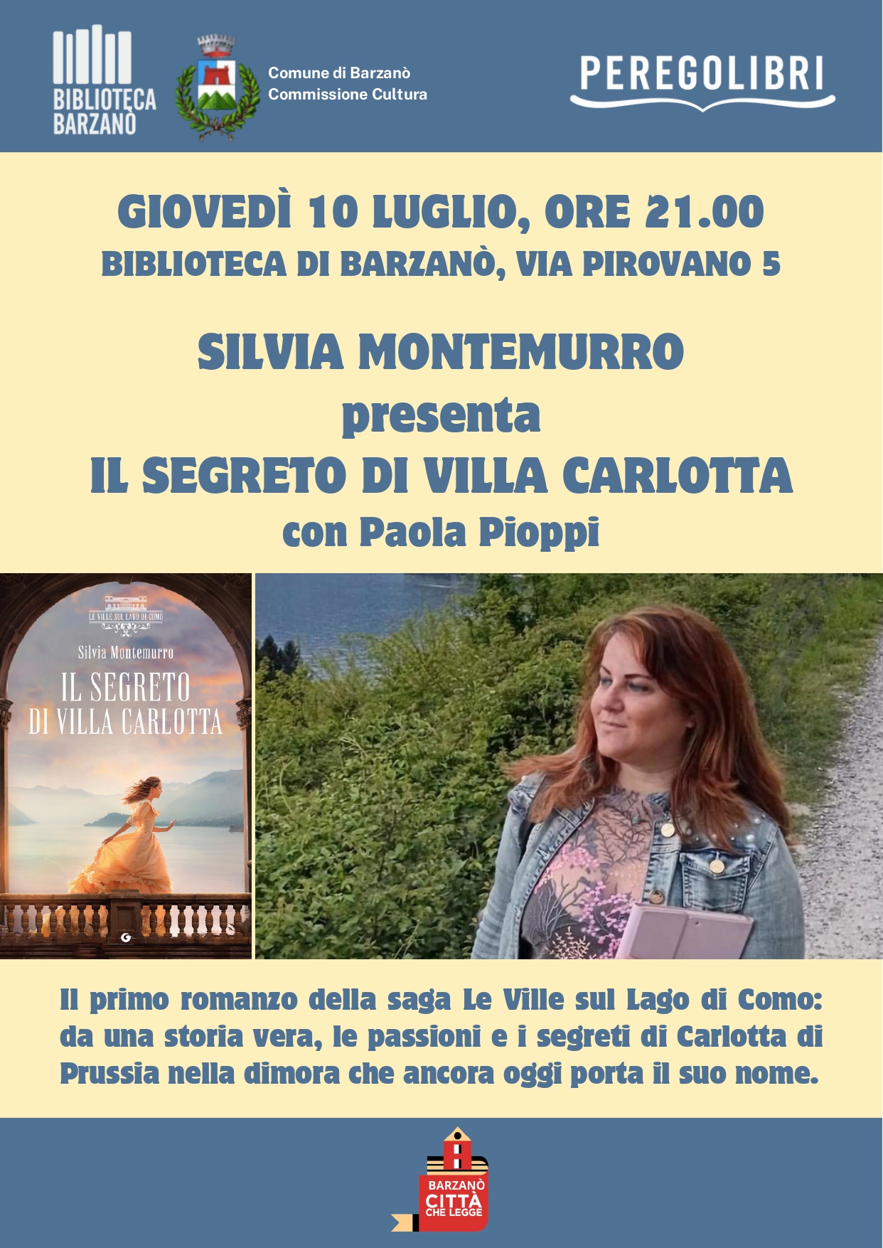 BARZANO’ – La Commissione Cultura di Barzanò, in collaborazione con Peregolibri, organizza per giovedì 10 luglio la presentazione del libro “Il segreto di Villa Carlotta”, alla presenza dell’autrice Silvia Montemurro. L’incontro si inserisce nel programma di Barzanò Città che legge, realizzato insieme ai firmatari del Patto per la lettura, e si terrà negli spazi esterni della biblioteca comunale, recentemente rinnovati.
