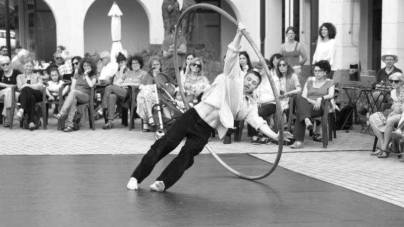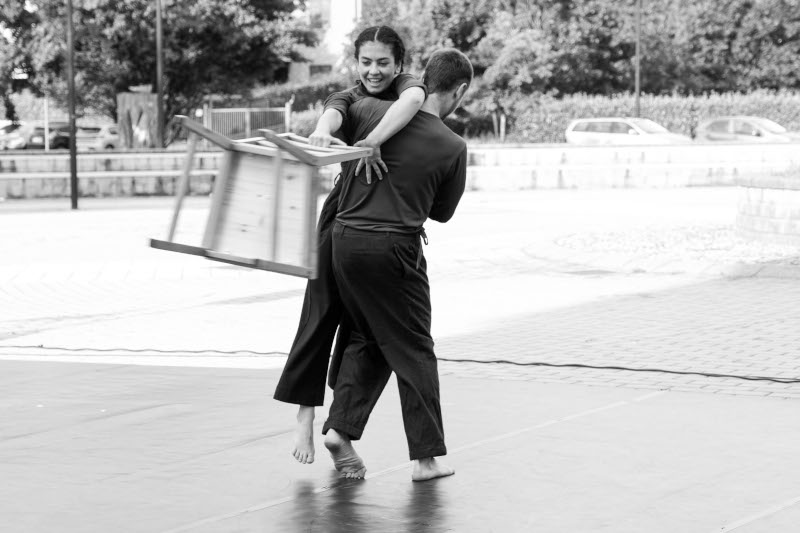 Pizziol e Sgambato hanno dato vita ad una coinvolgente improvvisazione; Edoardo ha incantato il pubblico presente con i suoi volteggi all’interno ed all’esterno del cerchio, metafora interessante per chi ha voluto coglierla; Alessandra Bordiga e Martina Rossi (Lelastiko) hanno dato vita ad una performance dove danza, musica, voce, corpo, clarinetto e percussioni si sono incontrate generando un fraseggio in continua evoluzione; poi ancora Priscilla Pizziol e Sgambato (Zerogrammi) hanno danzato “Amelia”: due corpi e una sedia per l’elogio della fragilità così connaturale all’essere umano ma così “ripudiata” dalla società odierna.