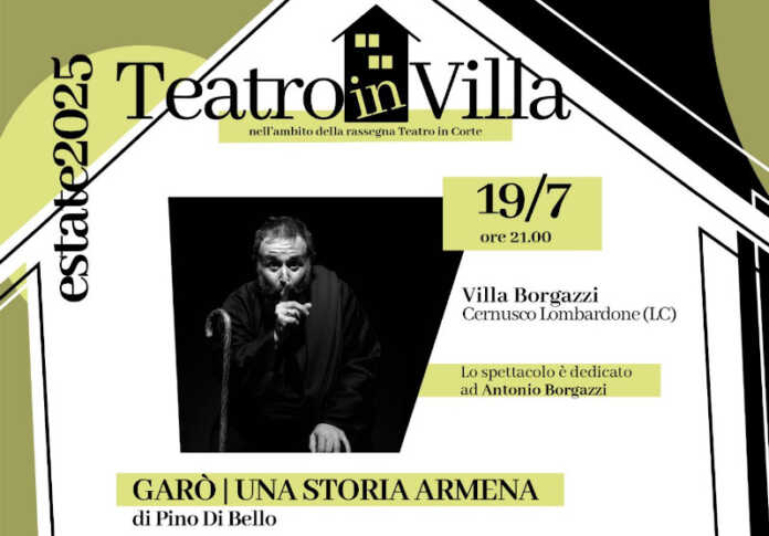L’attore meratese, da poco balzato agli onori delle cronache per lo spettacolo “Stretto” portato in scena in Sicilia a pochi giorni dall’impresa sportiva dell’attraversata a nuoto dello stretto di Messina, presenterà lo spettacolo “Garò, una storia armena” nell’incantevole cornice di Villa Borgazzi a Cernusco.