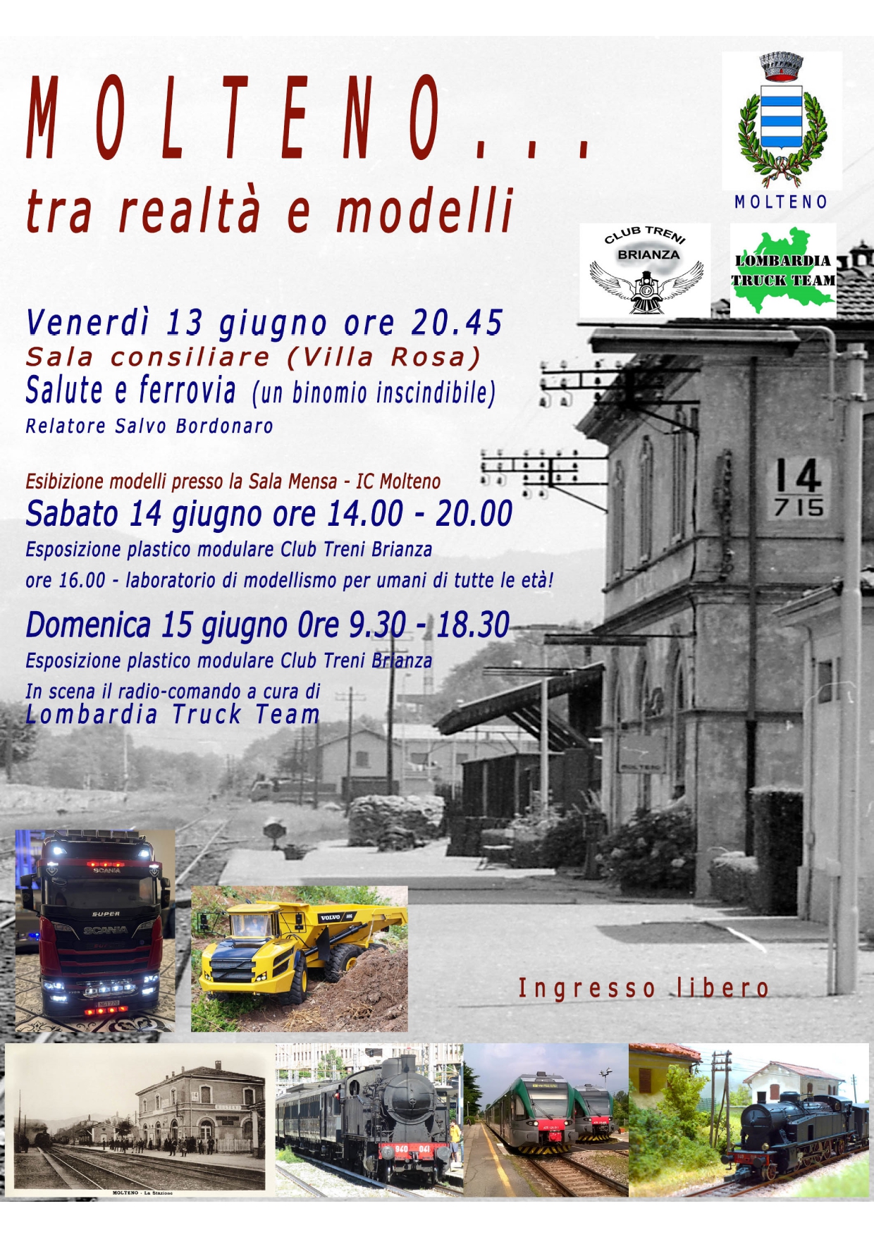 - Domenica 15 giugno, dalle ore 9.30 alle ore 18.30, presso la Sala Mensa dell’Istituto Comprensivo Statale di Molteno, continuerà l’esposizione del plastico modulare del Club Treni Brianza, e il Lombardia Truck Team porterà in scena il radio comando con modelli di camion e altri mezzi pesanti.