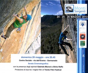 Alle ore 21, infatti, presso il Centro Sociale di Germanedo in via dell’Eremo si svolgerà l’ultimo appuntamento in calendario per l’edizione 2013 di Monti Sorgenti, il festival dedicato alla montagna e agli aspetti culturali legati ad essa. Il sipario sulla manifestazione si chiuderà con una serata cinematografica di alto spessore, con tanto di ospiti che interverranno alla serata: a Lecco, infatti, saranno presenti gli alpinisti Gabriele Moroni e Silvio Reffo, protagonisti del loro nuovo film sull’arrampicata estrema in Spagna.