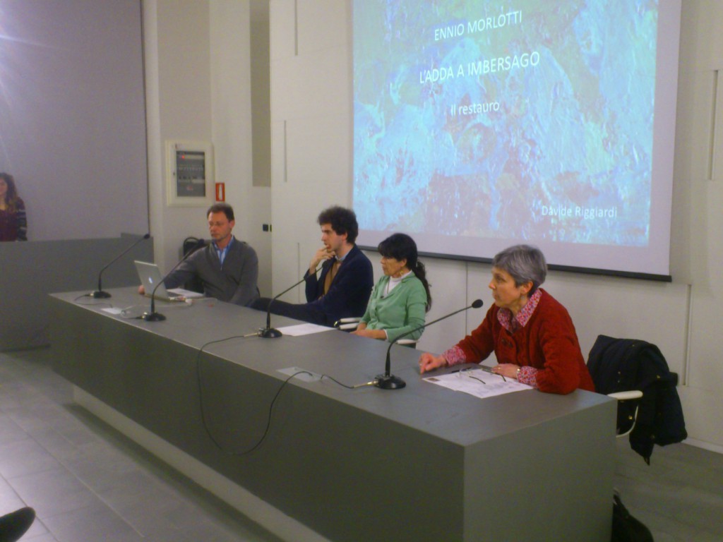Alla conferenza sono intervenuti Francesco Guzzetti, dottorando alla Scuola Normale Superiore di Pisa e curatore della mostra, e Davide Riggiardi, restauratore dell’opera in deposito dal Museo del Novecento presso il Palazzo delle Paure di Lecco, oltre a Barbara Cattaneo (Si.M.U.L) e Laura Polo D’Ambrosio, docente di storia dell’arte al Liceo Manzoni di Lecco.