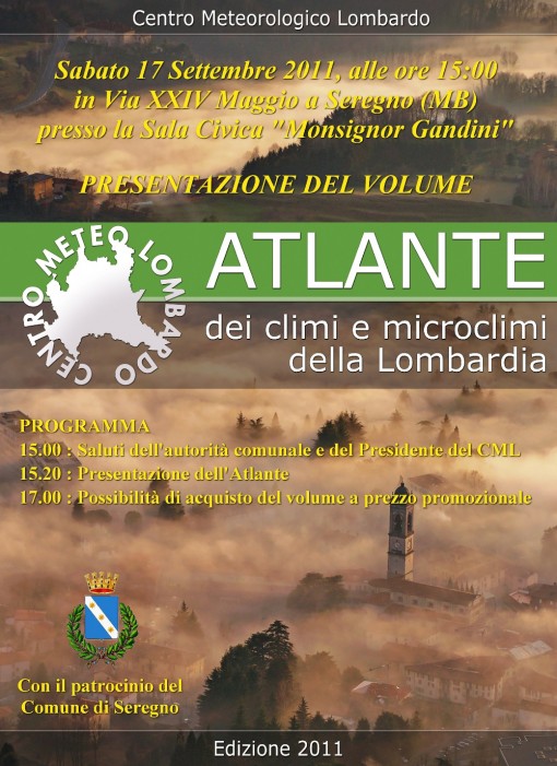 S’intitola “Atlante dei climi e microclimi della Lombardia” ed è l’ultima fatica dell’ associazione Culturale Centro Meteorologico Lombardo realizzata sotto il patrocinio del comune di Seregno e che sabato 17 settembre, alle 15, in via XXIV Maggio (Seregno) verrà presentata agli addetti ai lavori e alla cittadinanza nella la Sala Civica “Monsignor Gandini”.