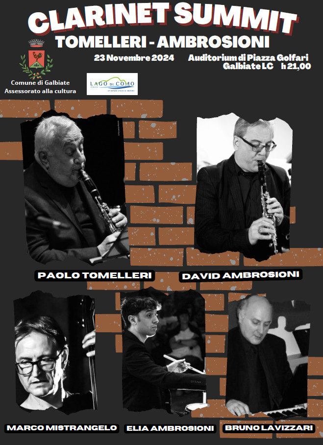 GALBIATE – L’Auditorium Golfari di Galbiate ospiterà un evento musicale imperdibile il “Clarinet Summit”, concerto di Paolo Tomelleri, uno dei sassofonisti più leggendari della scena musicale italiana e David Ambrosioni. Tomelleri, che ha collaborato con giganti come Enzo Jannacci e Adriano Celentano, e che ha ricoperto ruoli di rilievo come direttore durante varie edizioni del Festival di Sanremo, sabato 23 novembre si esibirà in un appuntamento che promette di essere un tributo alla grande tradizione musicale italiana.