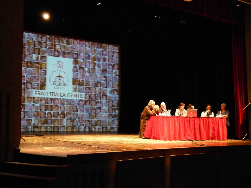 “Come parroco del Cinquantesimo – ha ricordato padre Saverio Corti – volevo un libro che tramite una raccolta di testimonianze parlasse dei costruttori di questa comunità, a partire dai frati passati, dalle vocazioni nate in parrocchia, fino a coinvolgere tutti i gruppi e le persone che fanno parte della comunità. Il risultato è ottimo e serve anche come verifica del cammino svolto in questi primi cinquant’anni; la stessa copertina è molto significativa: dimostra come la comunità sia fatta di tanti volti, di tante persone che hanno contribuito a scrivere una storia che deve assolutamente continuare”.