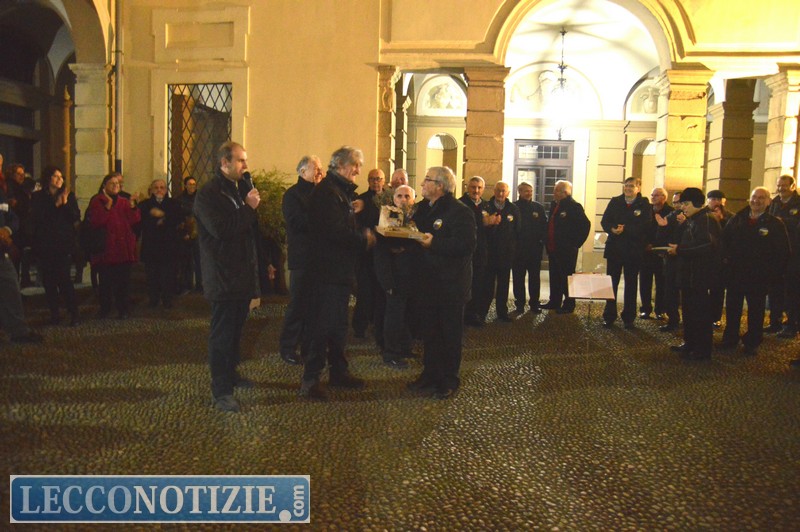 Prima di aprire i sotterranei e la cappella dove sono stati posizionati i diversi presepi, Massimo Brambilla, presidente del Coro Alpino Lecchese, ha ricevuto in dono, da parte del presidente dell’associazione Aiap, un piccolo presepe come ringraziamento per l’accompagnamento canoro che ha contribuito a rendere il clima ancor più natalizio.