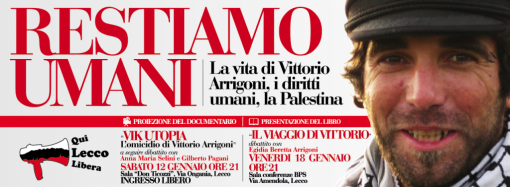 LECCO – È in programma per questa sera il secondo appuntamento con la rassegna “Restiamo Umani, la vita di Vittorio Arrigoni, i diritti umani, la Palestina”, promossa da Qui Lecco Libera.