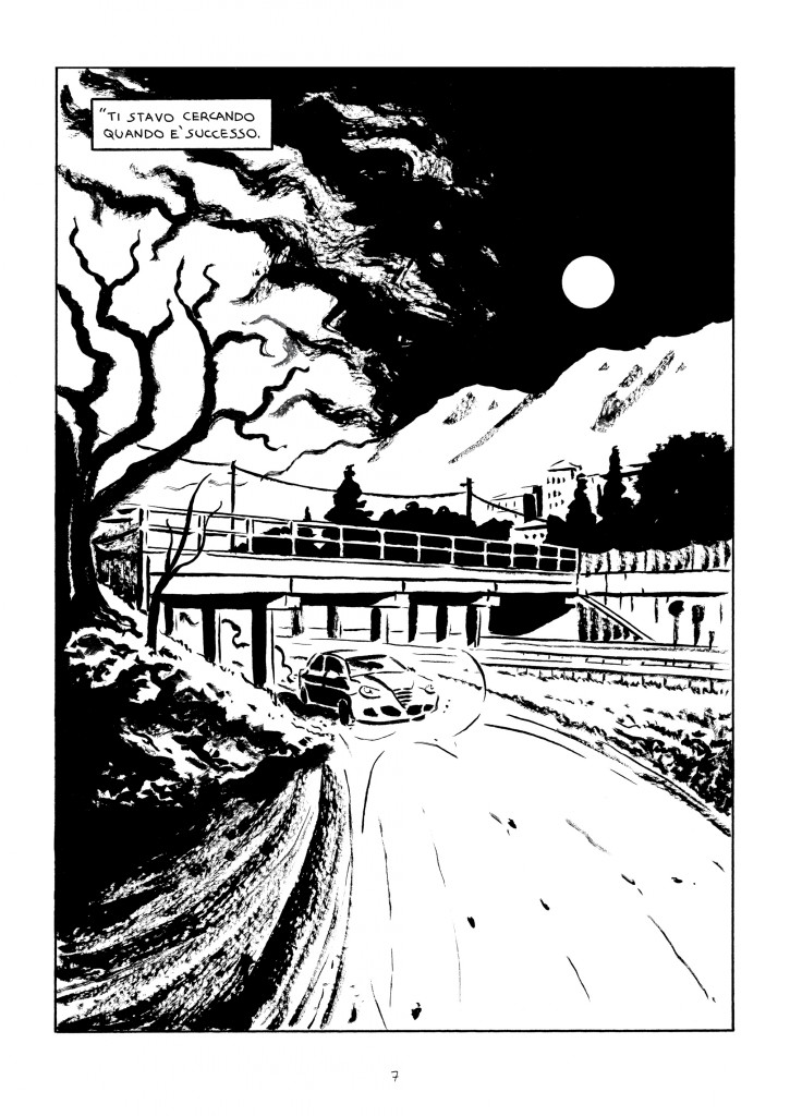 Giorgio Pandiani_Radici_03Molto curata la grafica del fumetto, con l’autore lecchese che si è soffermato molto sui dettagli, dalle rifiniture delle automobili a ogni singolo particolare dei vari protagonisti: “ogni storia richiede un suo stile e un suo segno – ha detto Pandiani – e nel caso di “Radici” la vicenda andava disegnata in bianco e nero, al contrario de “I Palazzi” che necessitava dei colori. Come sempre, all’inizio ho lavorato per accumulo di idee, particolari e dettagli, annotati su diversi taccuini: una volta formata la base della storia, ho scritto la sceneggiatura e in parallelo ho fatto lo storyboard; quindi ho disegnato le tavole a matita, ho revisionato i testi e infine ho ripassato con la china. È un procedimento lungo, che se fatto in modo professionale richiede il suo tempo: per questo bisognerà aspettare almeno un paio d’anni prima di vedere il seguito della storia, ma spero che il finale di questo primo volume crei la necessaria curiosità fra i lettori”.