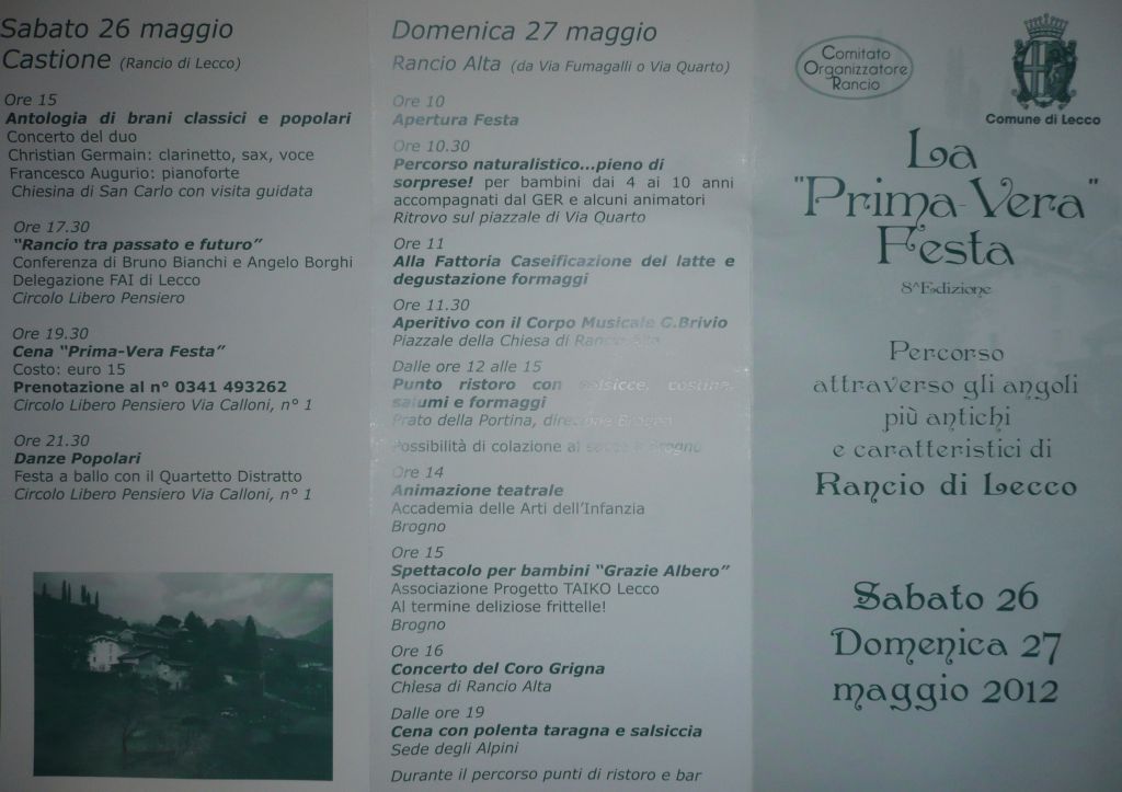 LECCO – Ai blocchi di partenza l’ottava edizione de La Prima-Vera festa, la manifestazione che sabato 26 e domenica 27 maggio trasformerà il rione di Rancio in un luogo tutto da scoprire. Angoli normalmente nascosti, dai cortili interni alle fattorie passando per cantine e vicoli suggestivi, saranno infatti aperti al pubblico e si animeranno di espositori e bancarelle di artigiani.