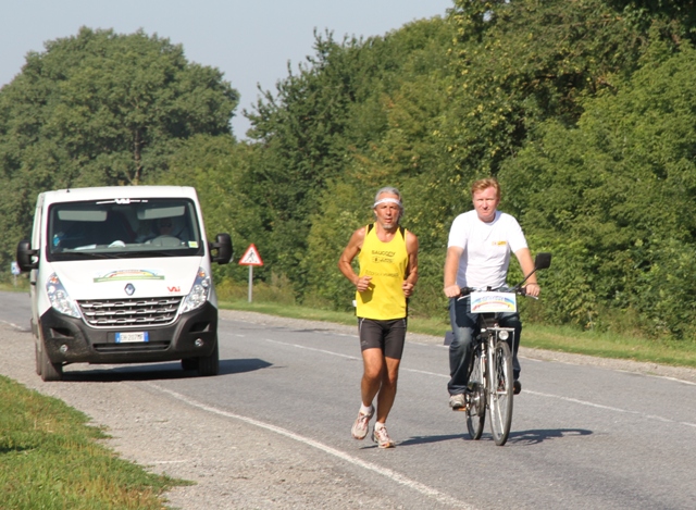“Oggi stiamo correndo, scoprendo e respirando a pieni polmoni l’Ucraina rurale, su una strada sterrata ci inoltriamo nella vera campagna ucraina, immense distese verdi adibite a pascolo con centinaia di cavalli, mucche, oche starnazzanti. Piccoli villaggi abbandonati da Dio e dagli uomini. I contadini con i loro carri immersi nella polvere delle rare auto di passaggio ci salutano festosamente. Gli immensi orizzonti e un cielo grande si aprono davanti a noi con enormi nuvole bianche e strade che sembrano andare verso l’infinito”.