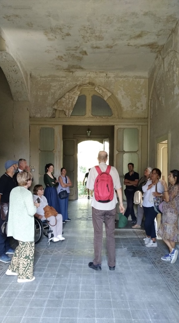 Il gruppo ha percorso i viali e i sentieri del parco, tornati visibili grazie a un graduale lavoro di pulizia. Molta emozione hanno suscitato il laghetto con il rustico neomedievale e la grotta “alla Ludwig”, simboli del legame della proprietà con Teresina Brambilla – moglie di Ponchielli – e con la famiglia Gerosa Crotta, che in seguito la conservò.