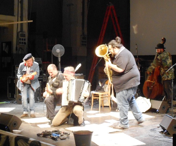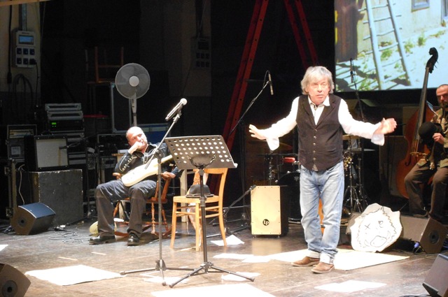 Innumerevoli, quindi, gli sketch inaspettati e divertenti, a partire dal primo momento della serata: appena varcata la soglia del teatro di piazza Garibaldi, il pubblico si è infatti imbattuto in sei abili musicisti, che proprio nell’atrio di ingresso si sono cimentati in melodie dai ritmi zigani e balcanici. Un primo saluto agli spettatori che ben ha fatto sperare sul resto della rappresentazione. Loro, “I virtuosi del Carso” diretti da Emanuele Dell’Aquila, hanno infatti affiancato Paolo Rossi durante tutto lo spettacolo, intervallando le battute del noto attore con melodie coinvolgenti, cui lo stesso comico ha spesso preso parte.
