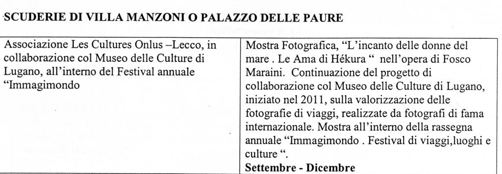 Ma quante sono, quindi, le iniziative selezionate dalla giunta comunale? «Si tratta di un totale di 12 percorsi – interviene Giovanna Esposito, dirigente del settore Cultura del comune di Lecco – scelti tra le ventinove proposte che sono pervenute nei nostri uffici entro la fine di novembre. L’interesse nei confronti delle mostre temporanee deriva dal fatto che siamo convinti che un museo non debba occuparsi solo di documentare e conservare permanentemente un certo patrimonio, ma che abbia anche la funzione di dare forma a iniziative particolari e limitate nel tempo».