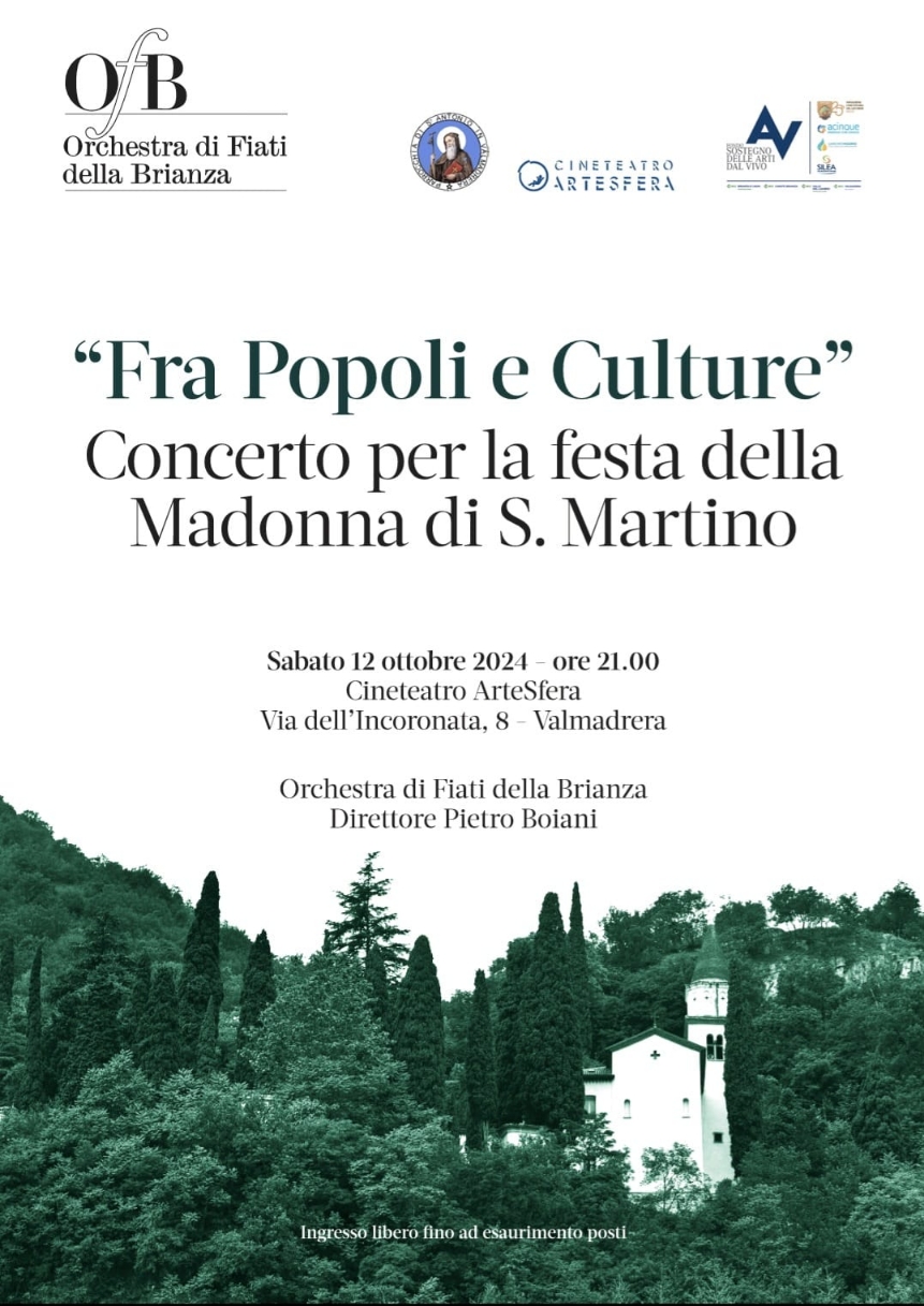 Il concerto intitolato “Fra Popoli e Culture” si terrà sabato 12 ottobre alle ore 21:00 al Cineteatro “Artesfera”