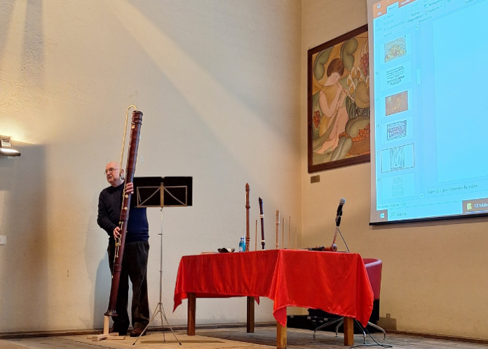 Durante la sua esposizione, il Prof. Sansone ha anche mostrato la sua abilità, deliziando il pubblico con esibizioni musicali su varie tipologie di flauto dolce, ciascuna con il suo timbro e le sue caratteristiche uniche. Al termine dell’incontro, si è intrattenuto con il pubblico, rispondendo a numerose domande e soddisfacendo la curiosità degli ascoltatori.