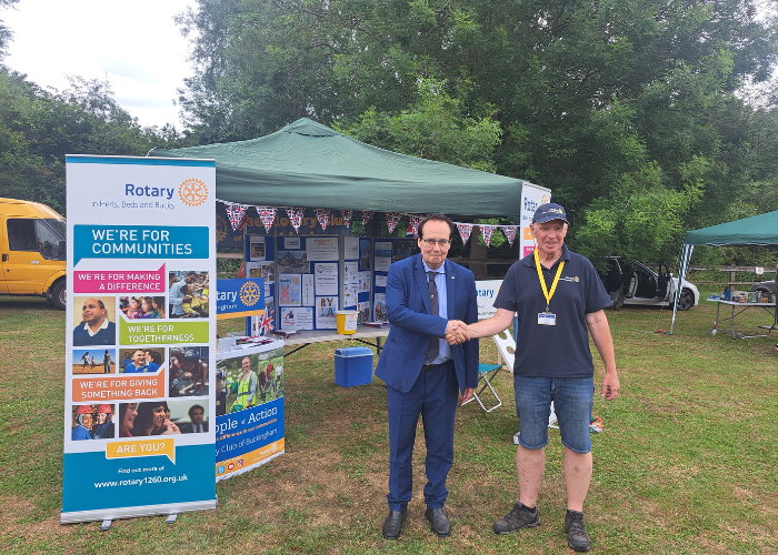 Il sindaco di Valmadrera, Cesare Colombo, e la rappresentante del Comitato Gemellaggio, Fiorenza Pelucchi, insieme al sindaco e al referente per il gemellaggio di Buckingham, hanno sottoscritto ufficialmente il patto di gemellaggio, intervenendo con un discorso nel contesto delle celebrazioni locali del Buckingham Day, svoltesi nel grande parco cittadino.