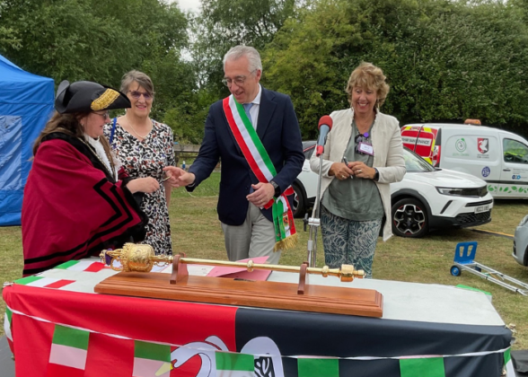INGHILTERRA – La delegazione di Valmadrera è stata invitata a Buckingham, in Inghilterra, per la seconda firma ufficiale del gemellaggio, avvenuta nella lunga e luminosa giornata del solstizio d’estate, in una location dal fascino tipicamente British.