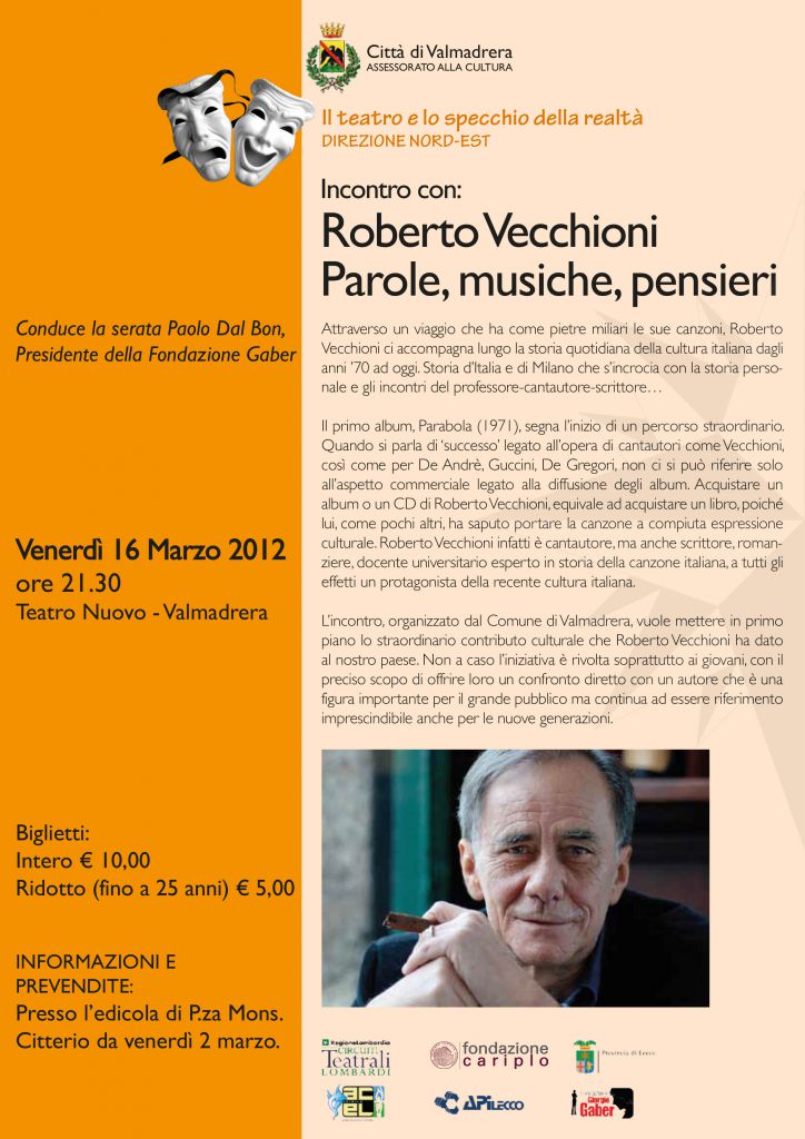 “Quando si parla di ‘successo’ legato all’opera di cantautori come Vecchioni, così come per De Andrè, Guccini, De Gregori – si legge nel programma della serata – non ci si può riferire solo all’aspetto commerciale e legato alla diffusione degli album. Acquistare un album o un CD di Roberto Vecchioni equivale ad acquistare un libro, poiché lui, come pochi altri, ha saputo portare la canzone a compiuta espressione culturale. Roberto Vecchioni infatti è cantautore, ma anche scrittore, romanziere,