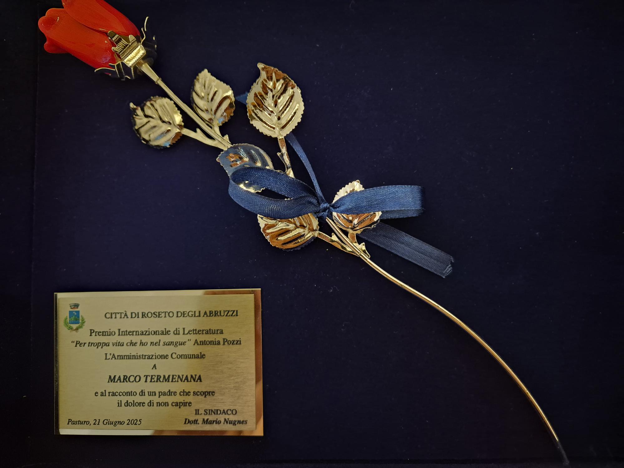 PASTURO – “Mio figlio. L’amore che non ho fatto in tempo a dirgli“, il libro di Marco Termenana ha vinto la Rosa d’Argento, il riconoscimento simbolo della città di Roseto degli Abruzzi attribuito in occasione della nona edizione del Premio Internazionale di Letteratura “Per troppa vita che ho nel sangue – Antonia Pozzi”.