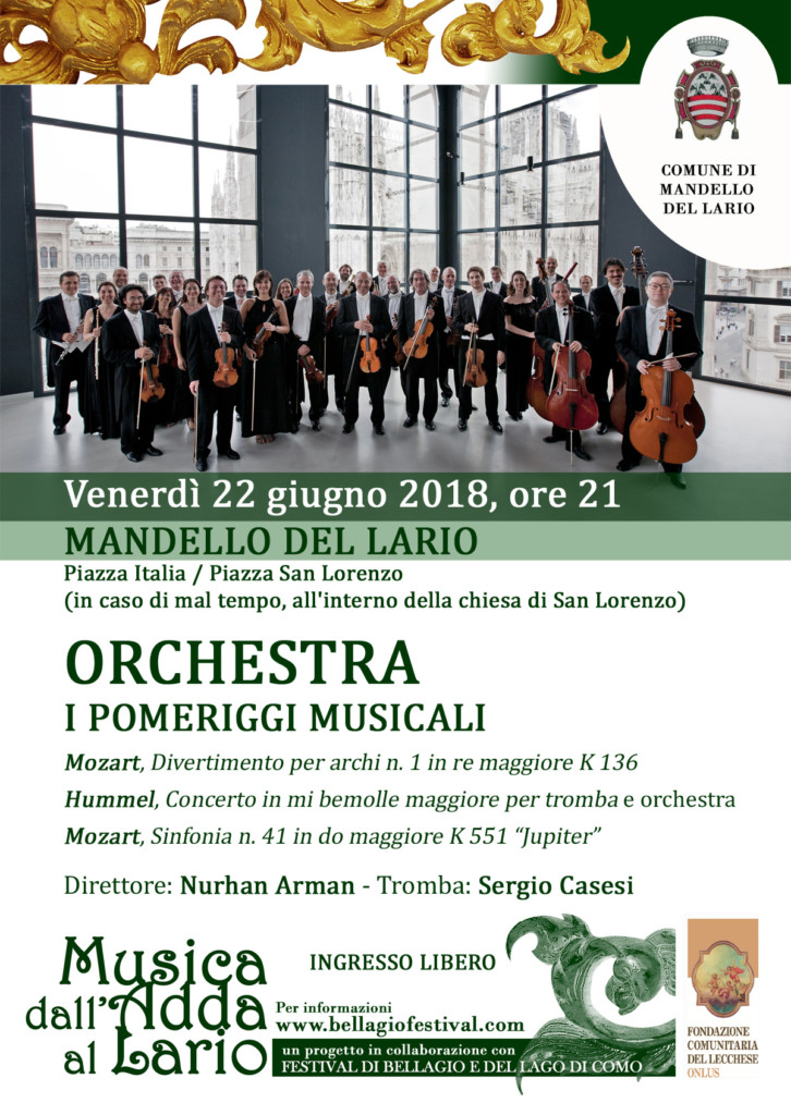 MANDELLO –  Serata mandellese per il  Festival di Bellagio e del Lago di Como, che venerdì farà tappa sul ramo orientale del Lario per un concerto  in Piazza Italia di Mandello.