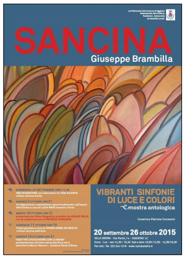 OGGIONO – Dal 20 settembre al 26 ottobre, in occasione di Ville Aperte in Brianza 2015, il Comune di Oggiono ospita a Villa Sironi “Vibranti sinfonie di luce e colori”, la mostra antologica di Giuseppe Brambilla in arte Sancina.