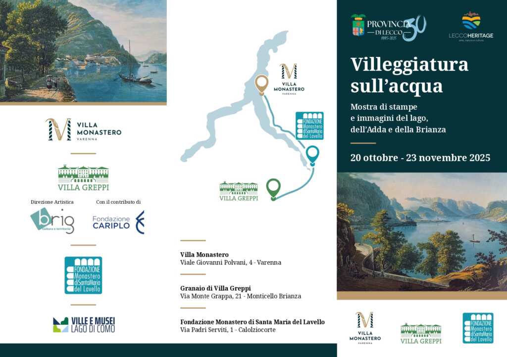LECCO – In occasione del 30° anniversario della nascita della Provincia di Lecco, Villa Monastero, Villa Greppi e il Monastero di Santa Maria del Lavello si uniscono in un percorso culturale unico con l’iniziativa “Villeggiatura sull’acqua”, che propone una selezione di stampe e disegni dedicati al lago di Como e al paesaggio della Brianza.