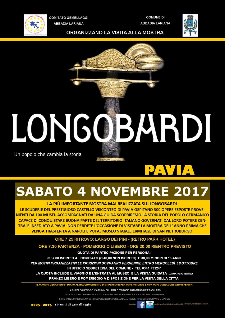 ABBADIA – Il Comitato Gemellaggi invita a tutti i cittadini alla mostra più importante mai realizzata sui Longobardi, a Pavia, per sabato 4 novembre.