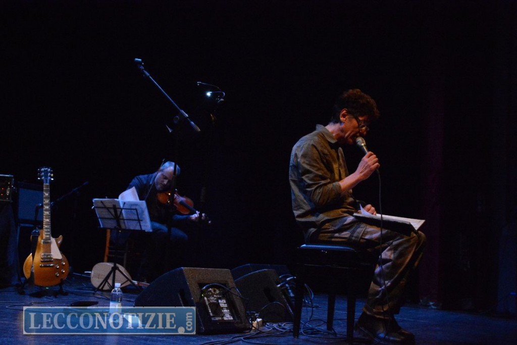 LECCO – Zamboni torna al Teatro della Società: sabato sera, l’ex chitarrista della storica band CCCP, si è esibito di fronte al pubblico lecchese con il suo “L’eco di uno sparo”, tratto dall’omonimo romanzo con il quale il musicista-compositore e autore si è aggiudicato il Premio Manzoni 2015 (vedi articolo).
