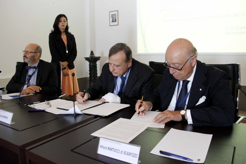 VARENNA – Venerdì mattina a Villa Monastero di Varenna, durante il 63° Convegno di Studi Amministrativi il presidente della Corte dei conti Arturo Martucci di Scarfizzi e il presidente della Corte Europea dei Diritti dell’Uomo Guido Raimondi hanno firmato un protocollo d’intesa nell’ambito del progetto per il dialogo e lo scambio di informazioni tra la Corte Europea (Corte EDU) e le più alte giurisdizioni nazionali.