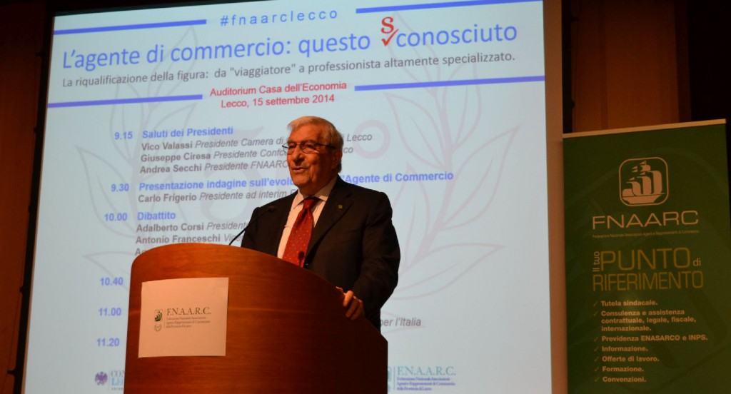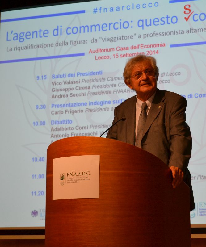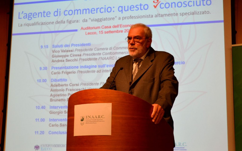 Adalberto Corsi, presidente della Federazione nazionale associazioni agenti e rappresentanti di commercio, è stato esplicito parlando oggi, lunedì 15 settembre, al convegno che si è tenuto nell’auditorium della “Casa dell’economia” in via Tonale per iniziativa della Fnaarc lecchese, costituita nel 1963 per iniziativa del cavalier Mario Figini.