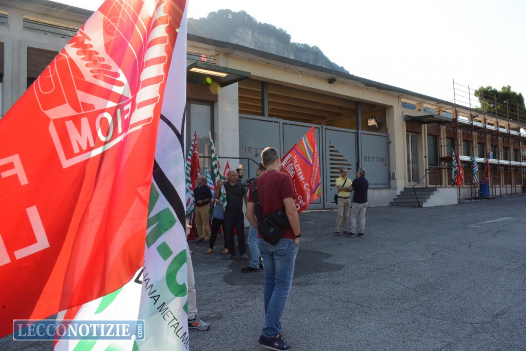MONTE MARENZO – Un’azienda che ai tempi d’oro dava lavoro a ben 160 dipendenti, oggi ne conta settanta ma il loro numero a settembre potrebbe scendere a quaranta se verranno realizzati gli esuberi annunciati: quasi metà Bettini verrebbe licenziata ed è per questo che giovedì mattina i dipendenti dell’azienda di Monte Marenzo hanno deciso di incrociare le braccia e presidiare, insieme ai sindacati, i cancelli della fabbrica.