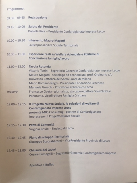 Un appuntamento importante non solo per le imprese ma anche per i cittadini, come illustrato giovedì mattina dal presidente Daniele Riva: “L’incontro sarà un punto di partenza per una rigenerazione di sicurezza e benessere per le nostre persone, comunità locali, imprese e collettività. Siamo molto soddisfatti di aver lanciato per primi questo progetto di welfare aziendale in un momento in cui dallo Stato arrivano sempre meno servizi”.