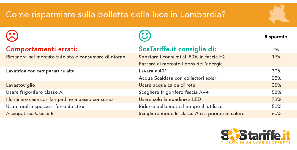 LECCO – Sondrio è la città dove si spende di meno per l’energia elettrica in Lombardia: in questo centro, infatti, il consumo annuo medio è di 2909 kWh pari a una spesa in bolletta di circa 587 euro (circa 8 euro in meno che a Campobasso, il capoluogo italiano con i consumi più bassi).