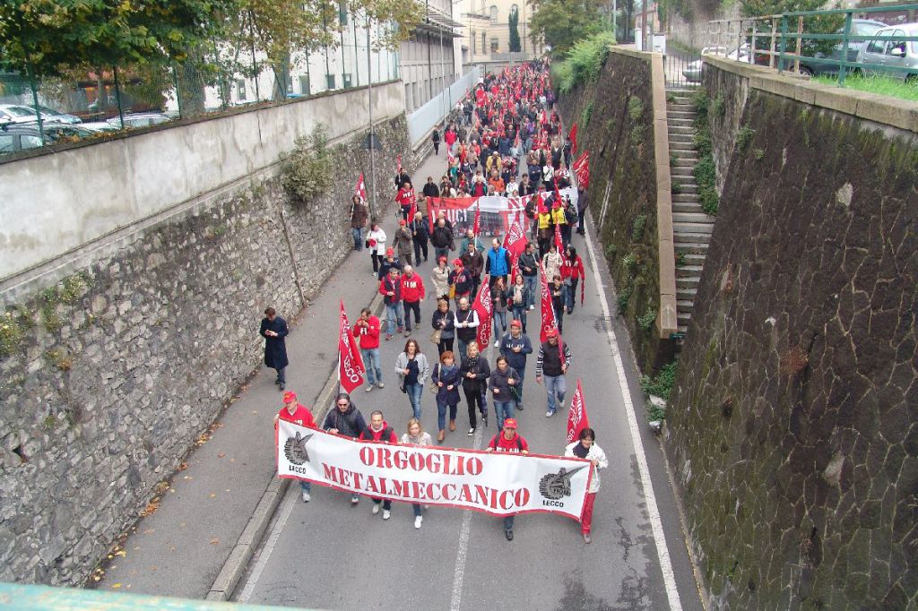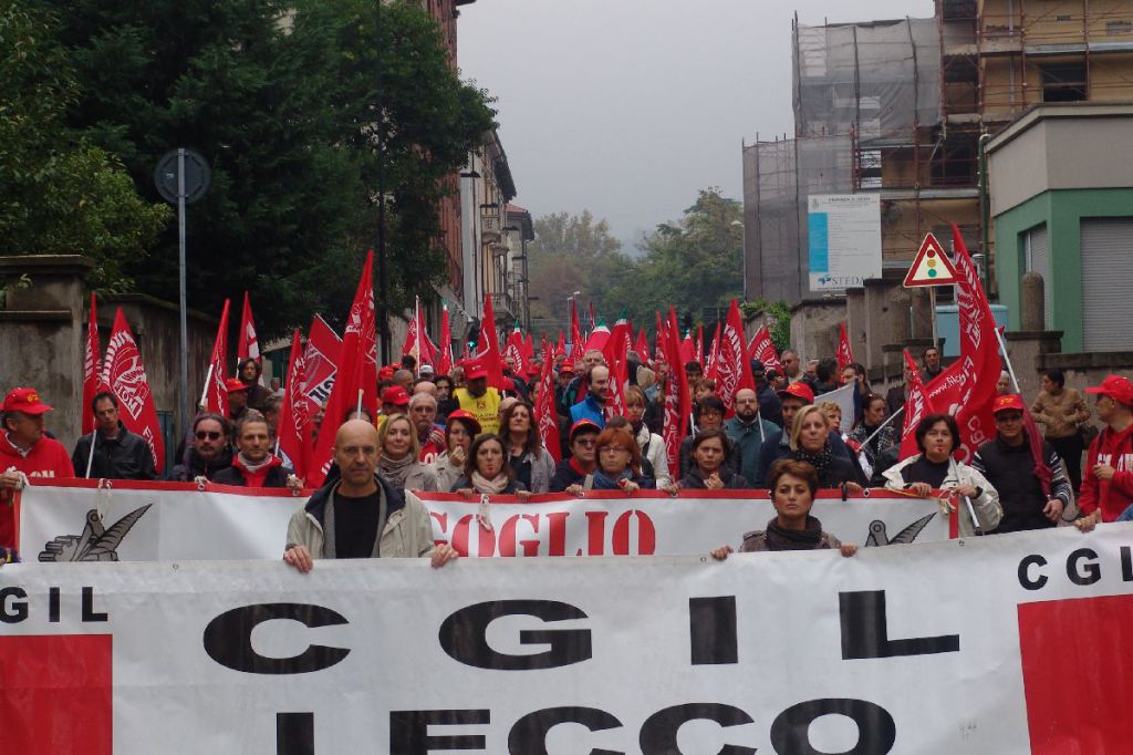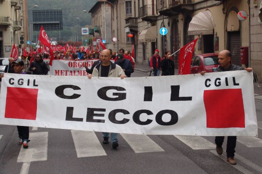 Più di 300 persone hanno sfilato per le vie di Lecco, tra questi delegati e delegate, lavoratori e le lavoratrici delle aziende in crisi e i precari della Pubblica Amministrazione.