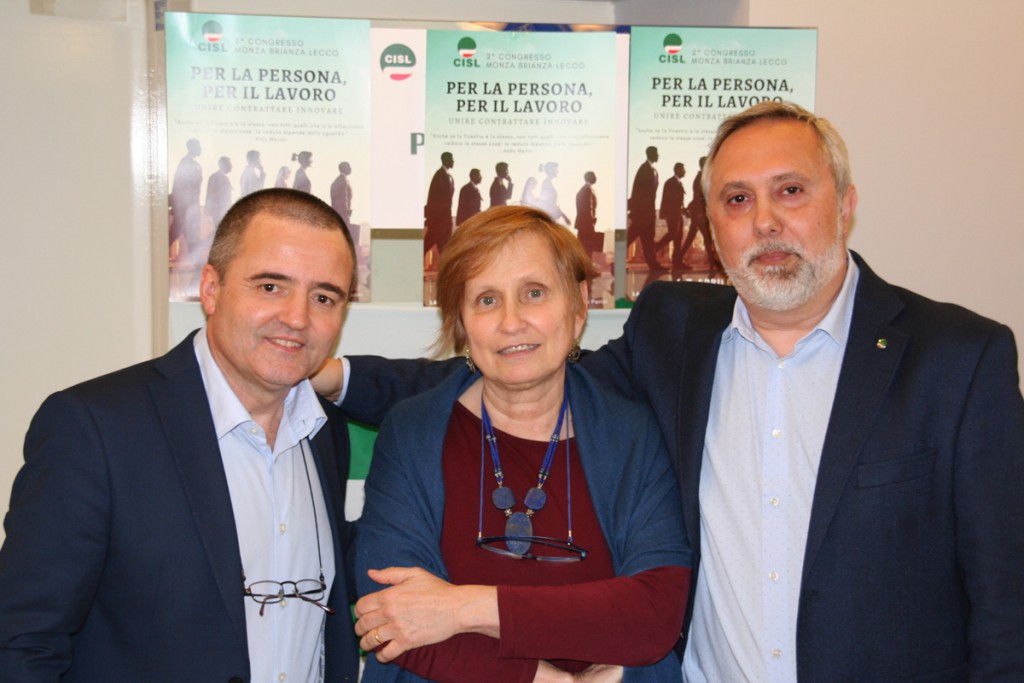 BOSISIO – II Congresso della Cisl Monza Brianza Lecco ha riconfermato la segreteria uscente: Rita Pavan, 59 anni, milanese, esperienza nella categoria del commercio e nella Cisl Lombardia, sarà ancora segretaria generale. Sarà affiancata da Mario Todeschini, 56 anni, lecchese, proveniente dal settore metalmeccanico, e da Mirco Scaccabarozzi, 56 anni, monzese, che ha lavorato nella categoria della scuola. La segreteria, che rimarrà in carica fino al 2021, dovrà portare a termine la delicata fusione tra Cisl Monza Brianza e Cisl Lecco avviata nel 2013.