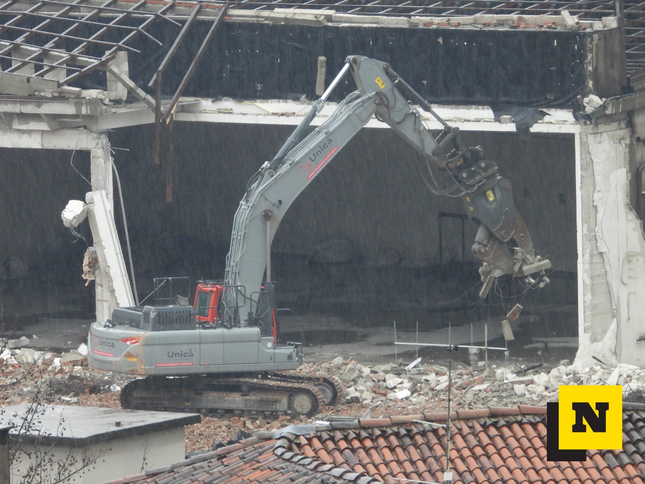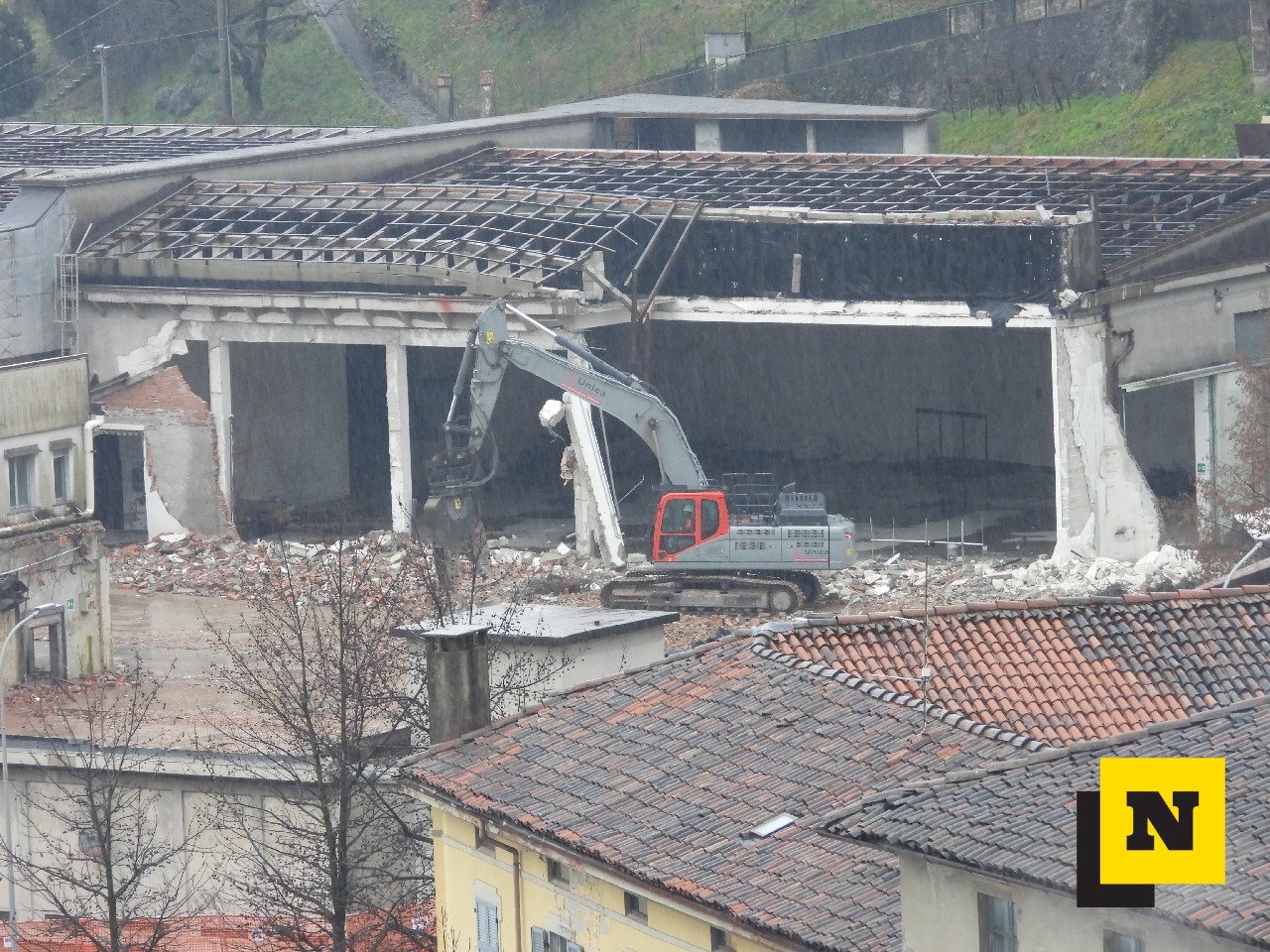 I mezzi da cantiere hanno iniziato l’abbattimento dei capannoni a Rancio