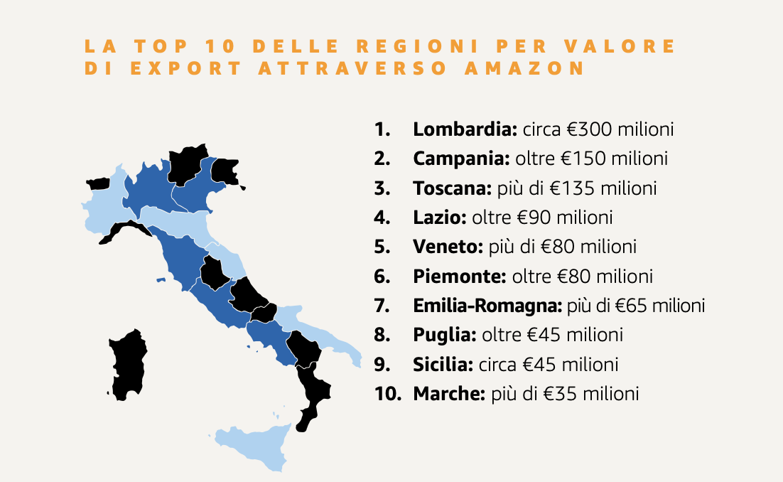 LECCO – Le piccole e medie imprese lombarde hanno conquistato il podio nell’export attraverso Amazon, con un risultato che segna una crescita significativa rispetto al passato. A comunicarlo è la stessa azienda di Jeff Bezos. Con un aumento del 50% rispetto al 2022, le PMI della Lombardia hanno registrato oltre 300 milioni di euro di vendite all’estero nel 2023, aggiudicandosi così il primo posto nella classifica regionale italiana seguita da Campania, Toscana, Lazio e Veneto. Questo dato riflette non solo il dinamismo del tessuto imprenditoriale lombardo, ma anche il ruolo sempre più centrale del digitale nell’espansione delle imprese italiane.
