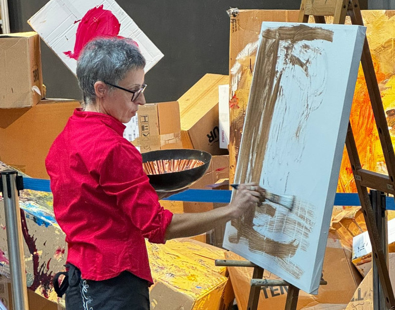 Oggi pomeriggio a tenere banco è stata anche la performance dell’artista Tiziana Morstabilini, che con “Bruciare” ha lanciato una provocazione forte al pubblico presente, inducendo una riflessione: dopo aver dato fuoco a banconote simboliche, ne ha usato la cenere per realizzare una “vernice” utilizzata quindi per realizzare un dipinto su tela.