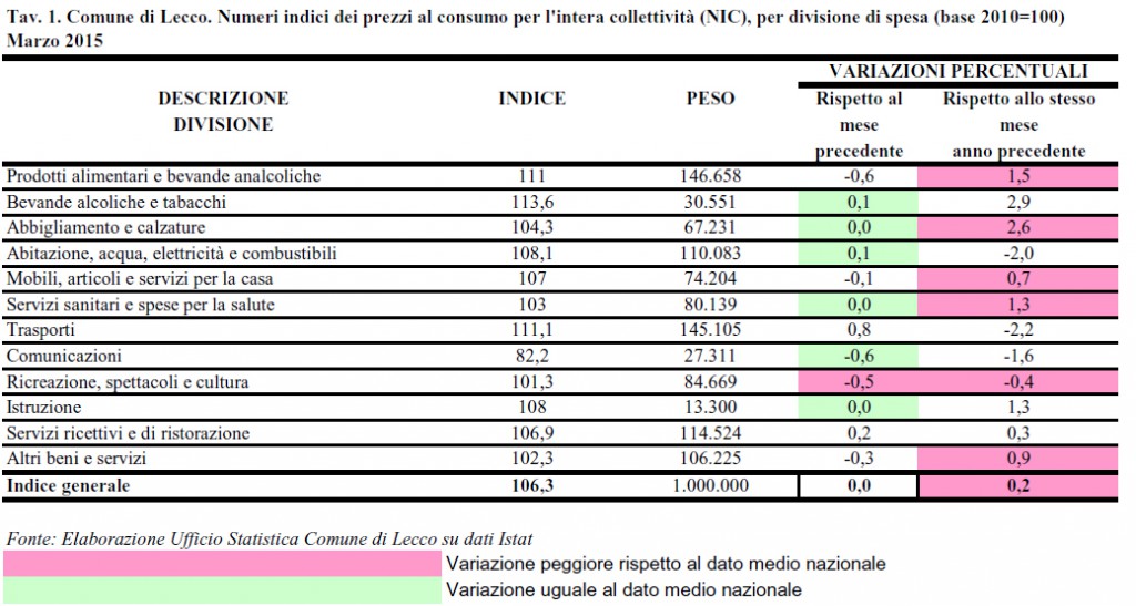 LECCO – Ancora un leggero aumento per l’inflazione a Lecco: a livello locale, nel mese marzo 2015, si registra un segno più rispetto al marzo dello scorso anno (+0,2%); variazione nulla, invece, quella rispetto allo scorso mese di febbraio.