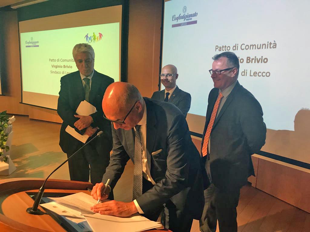 Anche il sindaco Virginio Brivio è intervenuto prima della sigla del Patto di Comunità al quale Confartigianato Lecco ha aderito ufficialmente, siglando il documento nel corso della conferenza.