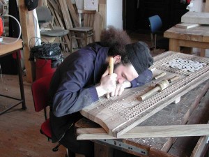 Tra i laboratori più originali, si segnala certamente quello dedicato alla lavorazione della scagliola. L’arte della scagliola ha origini remote e una storia recente: origini remote poichè fin dall’antichità è uso corrente decorare superfici a imitazione del marmo; la sua storia è invece recente perchè l’utilizzo della polvere del gesso mescolata a fingere il marmo, abbinato ad una tecnica ad intarsio, è documentato solo a partire dal XVI secolo. Si tratta di una tecnica senz’altro più economica rispetto al commesso di pietre dure, anch’esso in voga a partire dal XVI secolo, con la creazione nel 1588 da parte del Granduca Ferdinando I de’ Medici della Manifattura del commesso fiorentino, poi nota come Opificio delle pietre dure. Con ciò non si vuole considerare la scagliola una tecnica artisticamente di livello inferiore; anzi, gli scagliolisti raggiungono un notevole livello di perfezione, senza contare la varietà di soluzioni compositive e tecniche proposte, tali da meritare il fiorire di studi specialistici che caratterizzano il ‘900, e una maggior attenzione da parte del grande pubblico.