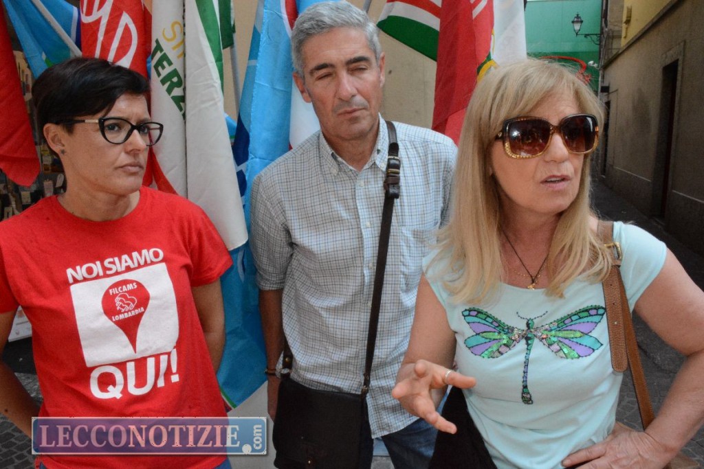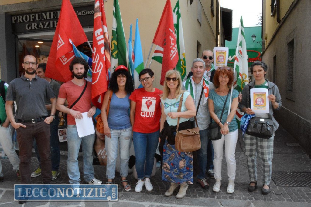 LECCO – Mobilitazione dei lavoratori della grande distribuzione che sabato mattina hanno manifestato con un presidio a Lecco, nella centralissima via Roma, per lo sciopero promosso dai sindacati di settore di Cgil, Cisl e Uil.