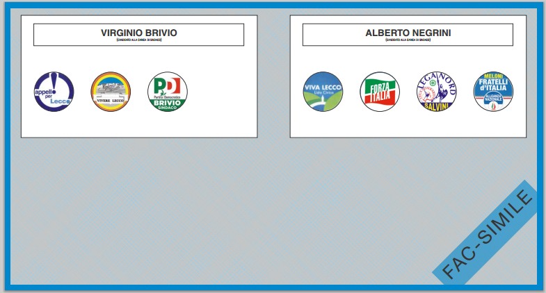La sfida è tra il sindaco uscente Virginio Brivio, sostenuto dalla coalizione di centro sinistra (PD, Appello per Lecco, Vivere Lecco), e Alberto Negrini a capo della coalizione di centrodestra (Lega Nord, Forza Italia, Fratelli d’Italia, Viva Lecco) che ha superato lo scoglio del voto di domenica.