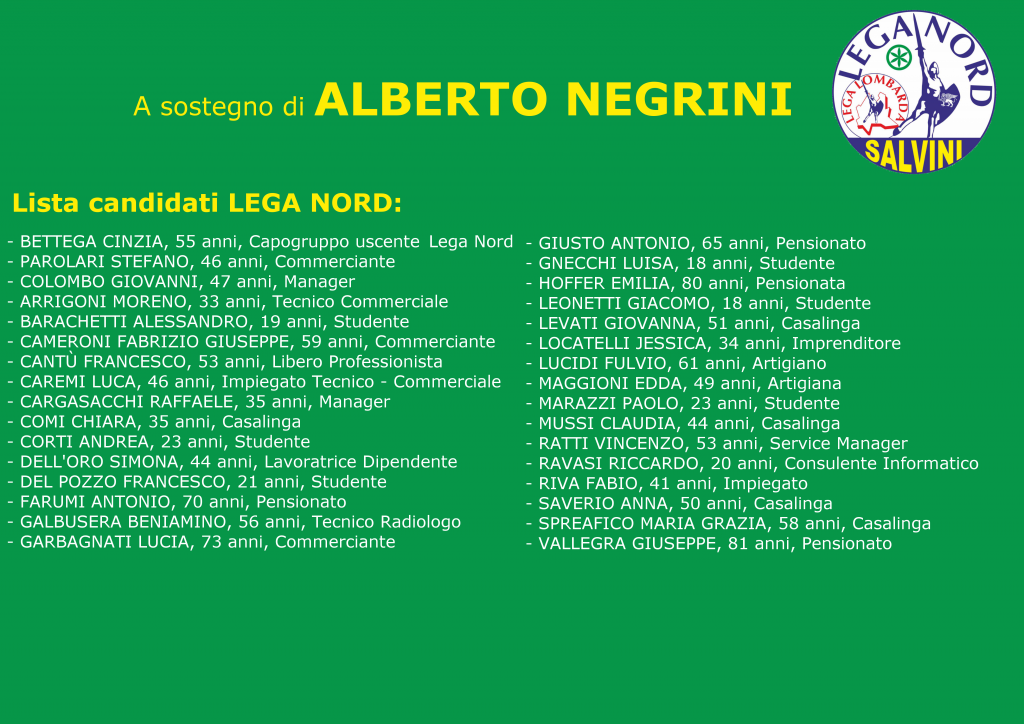 LECCO RIPARTE NEGRINI SINDACO – CANDIDATI FRATELLI D’ITALIA – CANDIDATI LEGA NORD – CANDIDATI FORZA ITALIA – CANDIDATI VIVA LECCO