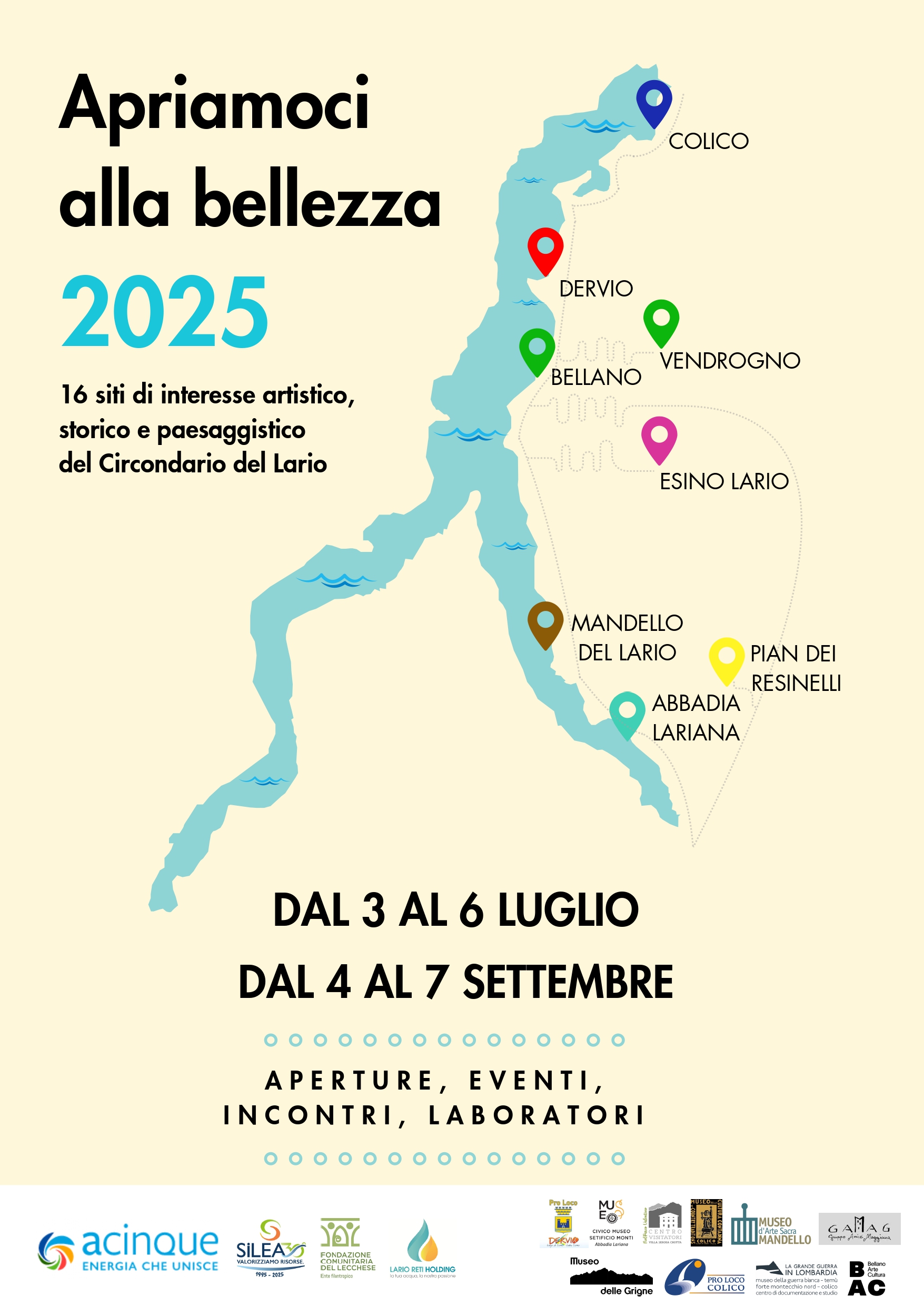 L’evento, che ha come titolo “Apriamoci alla Bellezza 2025”, consiste in una rassegna di aperture straordinarie, eventi, incontri e laboratori che coinvolgerà i 16 siti di interesse artistico, storico, naturalistico e culturale distribuiti sul territorio.
