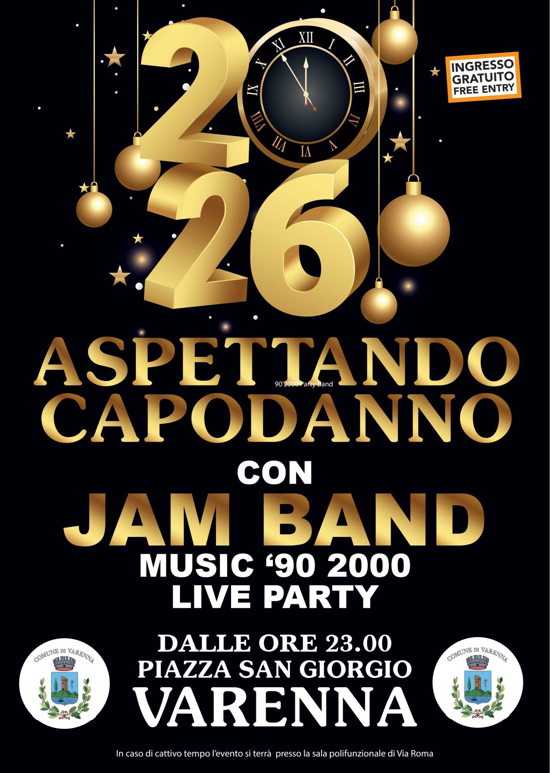 Protagonisti assoluti saranno i Jam Live Band, una delle formazioni più travolgenti e apprezzate del panorama live del nord Italia e della Svizzera. Un appuntamento aperto a tutti, che promette di far ballare l’intera città fino allo scoccare della mezzanotte.