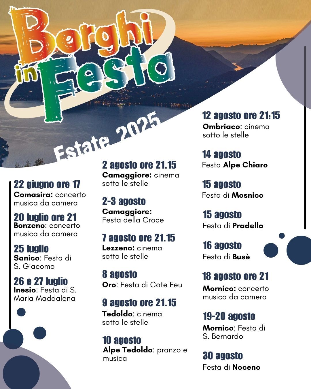 Da Giovedì 14 a Sabato 16 Agosto si terrà Borghi in Festa: un’iniziativa volta a dare rilevanza ai borghi intorno a Bellano, valorizzandone storia e tradizione. Partecipano all’iniziativa Alpe Chiaro, Loc. Mosnico, Loc. Pradello e Loc. Busè. Il programma completo può essere trovato seguendo questo link.