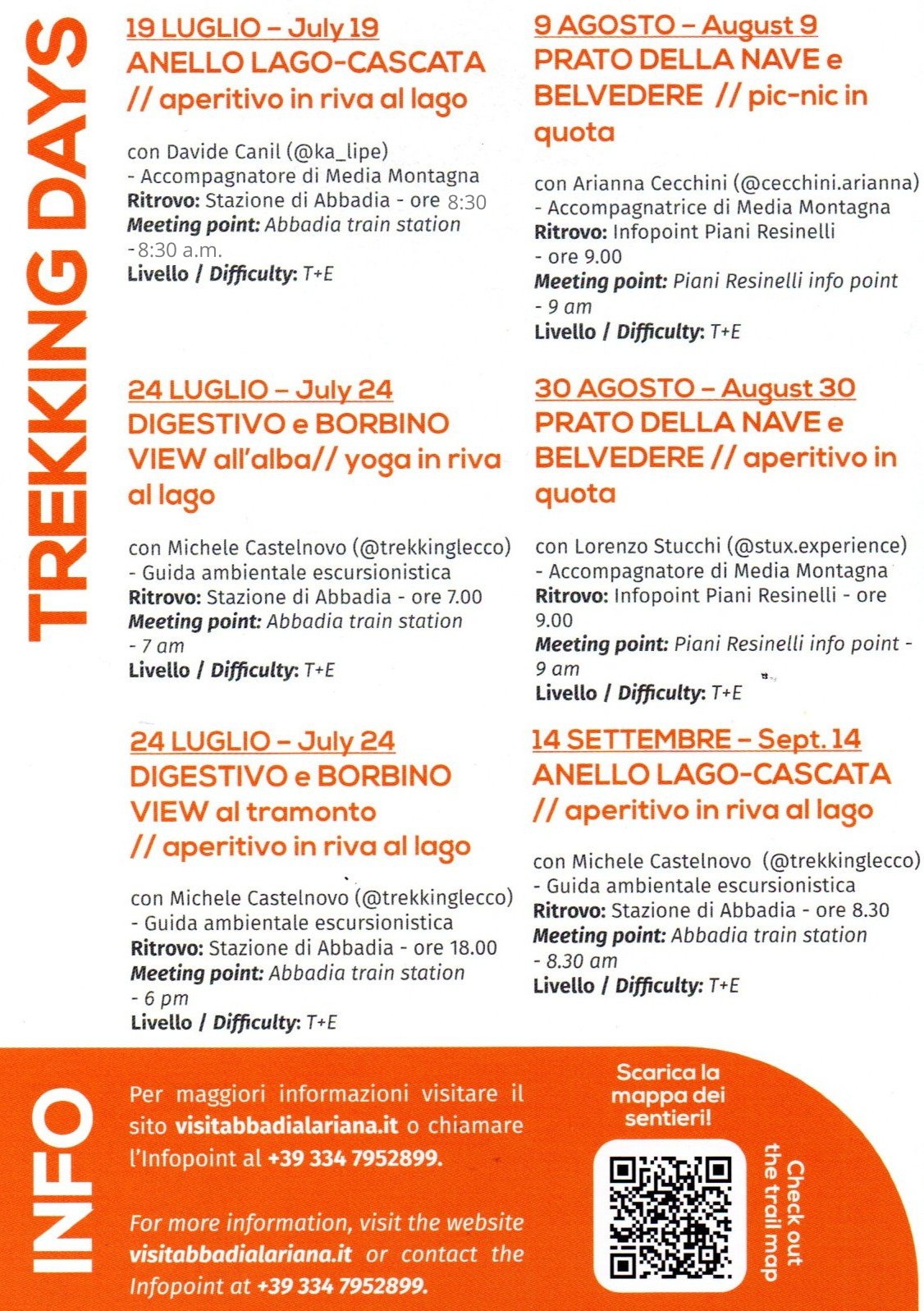 Visto il grande successo dello scorso anno, anche quest’estate tornano le iniziative gratuite promosse dal Comune di Abbadia Lariana grazie al bando di Regione Lombardia “Ogni giorno in Lombardia”, per valorizzare la rete sentieristica e gli itinerari tematici del territorio, con l’obiettivo di promuovere un turismo sostenibile.