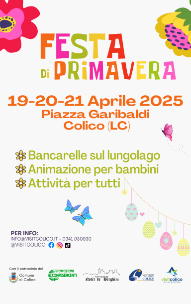In occasione delle festività pasquali Piazza Garibaldi a Colico si prepara ad accogliere la vivace e colorata “Festa di Primavera” dal 19 al 21 aprile 2025, con orario continuato dalle ore 9.00 alle 19.00.
